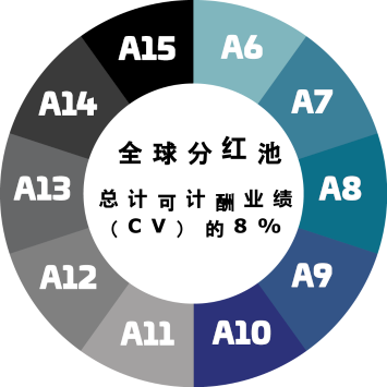 从 A6 等级开始,可参与公司全球 8% 可计酬销售额的分红。
